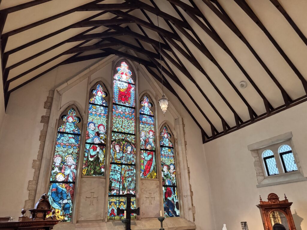 - 太陽が高い午前〜昼前に行くとステンドグラスの色合いが鮮やか