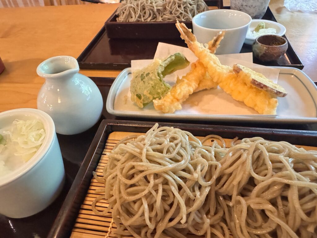 外観も素敵で、風情のある店内。最高の空間でいただいたのは、一番人気の天そば!蕎麦のコシと香りのバランスが絶妙で、天ぷらのサクサク感とプリプリなエビ、「この旅行の幸福度が上がった瞬間」でした。