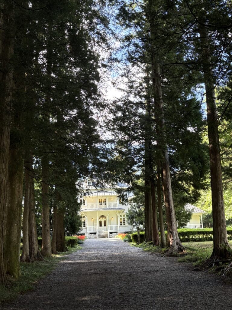 奥の広場には一面黄色のひまわり畑(時期によって違う花)、その横には明治時代にドイツ公使や外務大臣等を務めた青木周蔵の那須別邸「旧青木家那須別邸」があります。