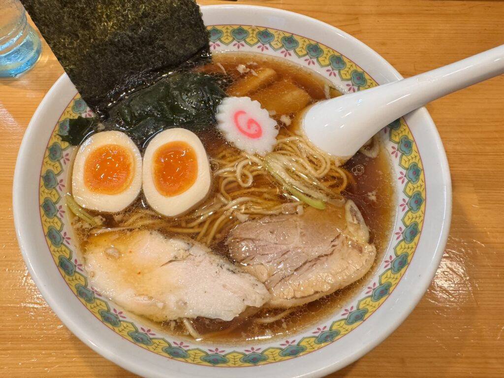 スープは透き通った醤油ベース。鶏ガラや野菜の旨みがじんわりと感じられ、あっさりしながらも奥深い味わいです。油分が控えめなので、餃子と一緒に食べても重くなりません。